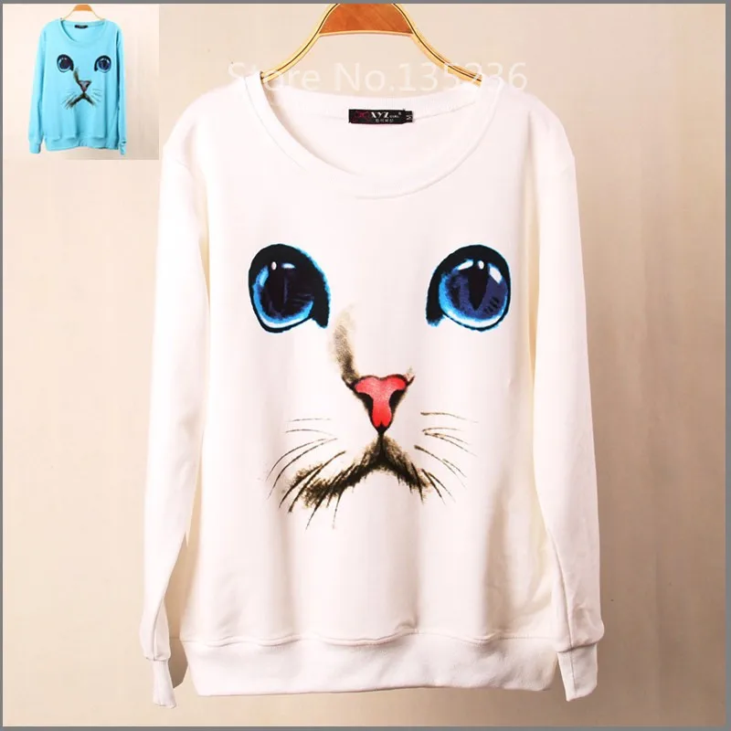 New Fashion Brand Women Cartoon Cat Printed Sweatshirt Hoody Hoodies tracksuits Pullovers Suit Tops Outerwear S/M/L