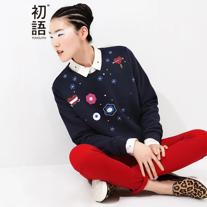 Toyouth Women Hoodies Sweatshirts 2016 Women O-neck Cartoon Embroidery Female Tracksuit