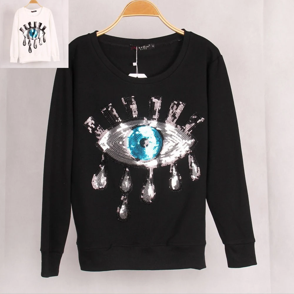 Autumn Spring New Women Eye Sequined Printed Sweatshirt Hoody Hoodies Tracksuits Pullovers Long Tops Outerwear Women SML