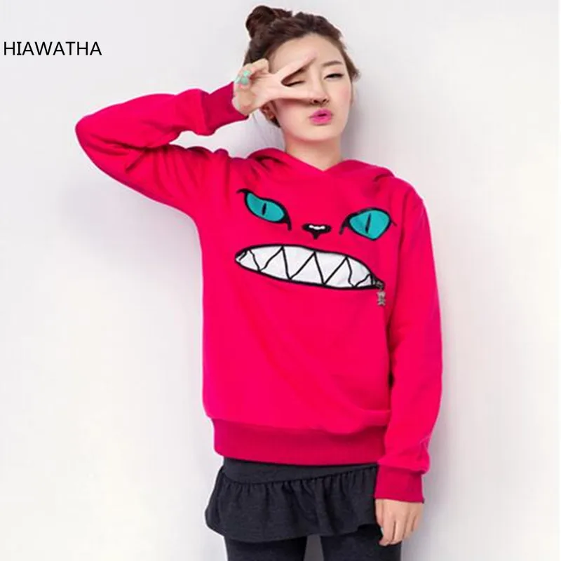 SAVE 15%! The Besf Offer HIAWATHA Hoodies Women Fashion Cat Printed Sweatshirt Fleeces Thicken Hooded Sweatshirts Casual Pullovers HO-085