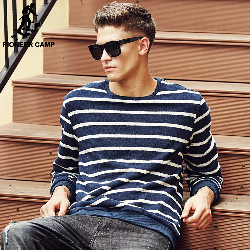 Pioneer Camp 2016 New arrival Autumn winter Classic Striped Hoodies Men O-Neck Soft Sweatshirt male Clothing Soft Loose 677090