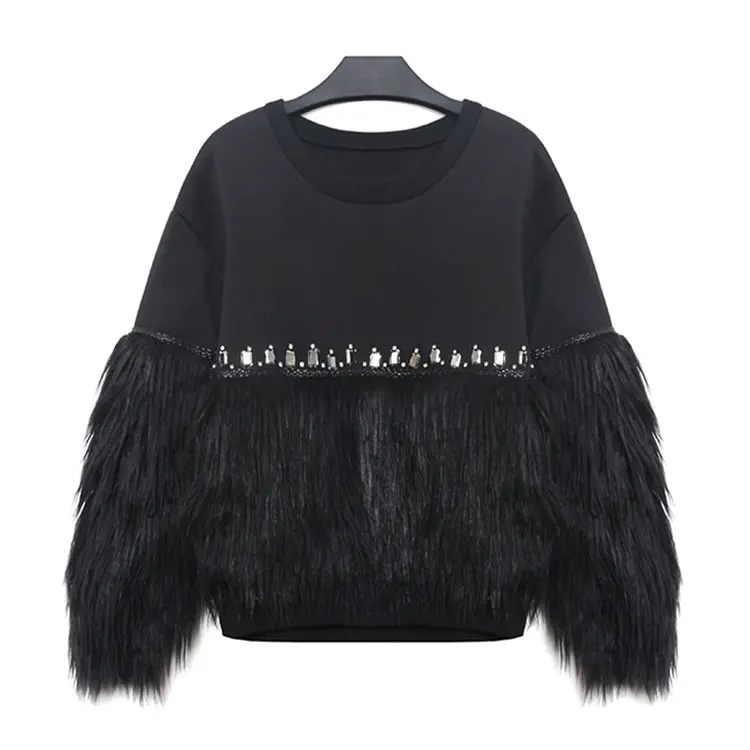 | [TWOTWINSTYLE] 2016 Autumn Winter Original Fur Patchwork Beading Decorate Sweatshirt Women New Streetwear |