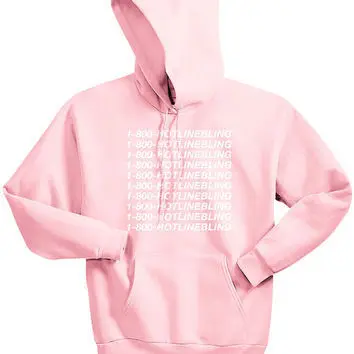 Unisex 1-800 Hotline Bling Drake light pink Sweatshirt Hoodies women autumn Hooded pink colours